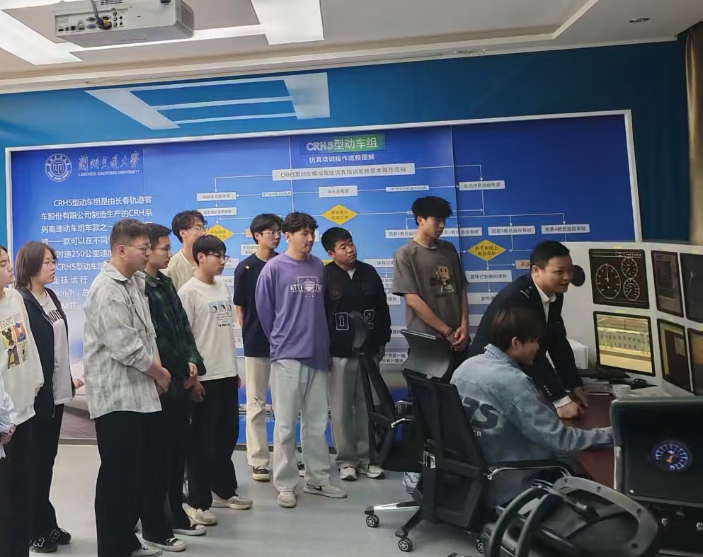 讲座结束后,丁天勋又来到学院机车实训中心,亲自指导学生机车驾驶,讲解操作要领。他鼓励同学们抓住一切学习机会,努力掌握专业知识,不断提升技能,才能成为合格的新时代铁路建设者。