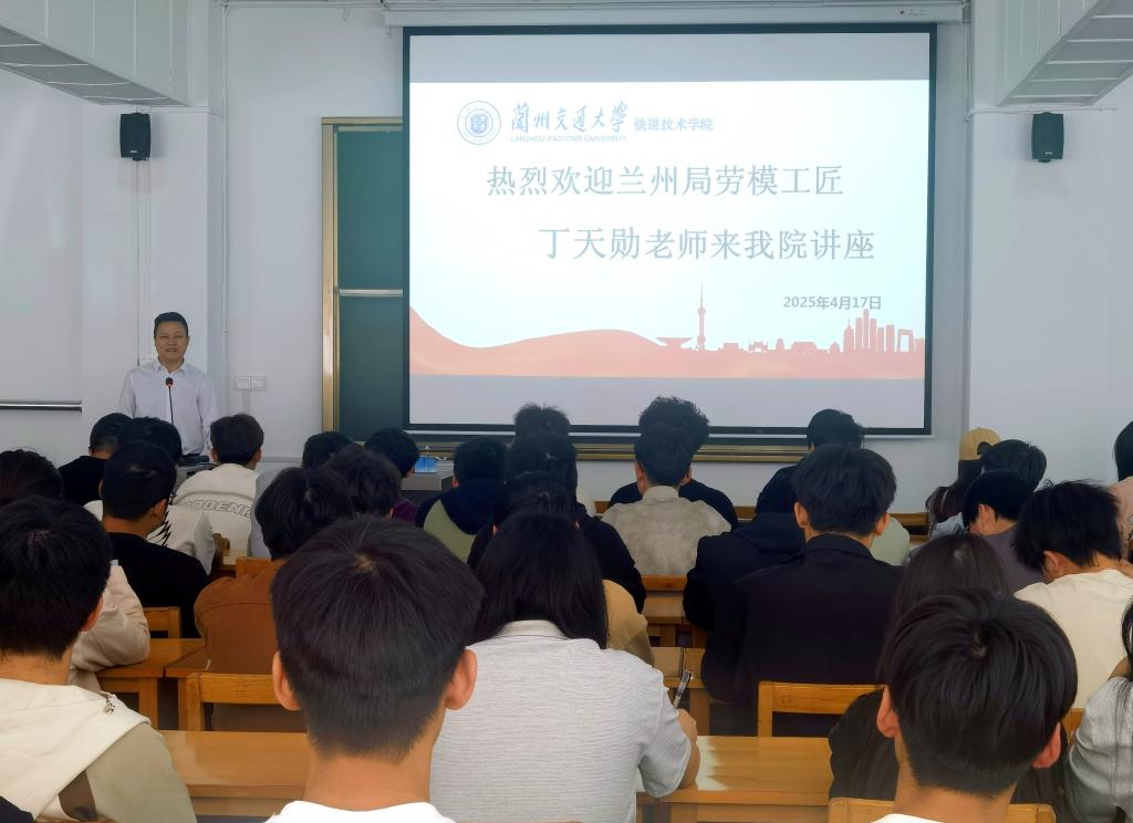 2025年4月17日,中国铁路兰州局集团有限公司兰州西机务段客运一车间指导司机、新八级特级技师丁天勋以校企兼职教师身份做客“劳模工匠进校园”讲座,为我院师生带来一场“分享奋斗故事,启迪职业规划”为主题的精彩讲座。