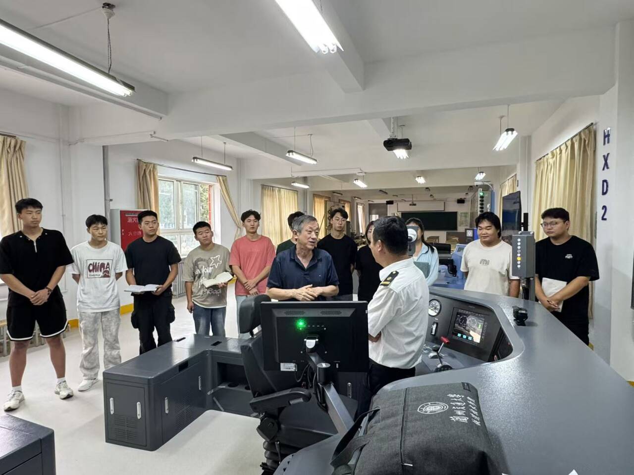 丁天勋大师首先系统介绍了铁路新型机车设备的特点、功能以及现场运用情况。随后,他带领学生来到学院新建实训室,亲自操作新设备,手把手地传授每一个操作步骤和注意事项,将复杂的操作流程分解为简单易懂的部分,让学生们能够充分理解和掌握。在传授过程中,丁大师还针对同学们遇到的问题和困惑进行了解答,使同学们能够真正学懂弄通,熟练掌握。