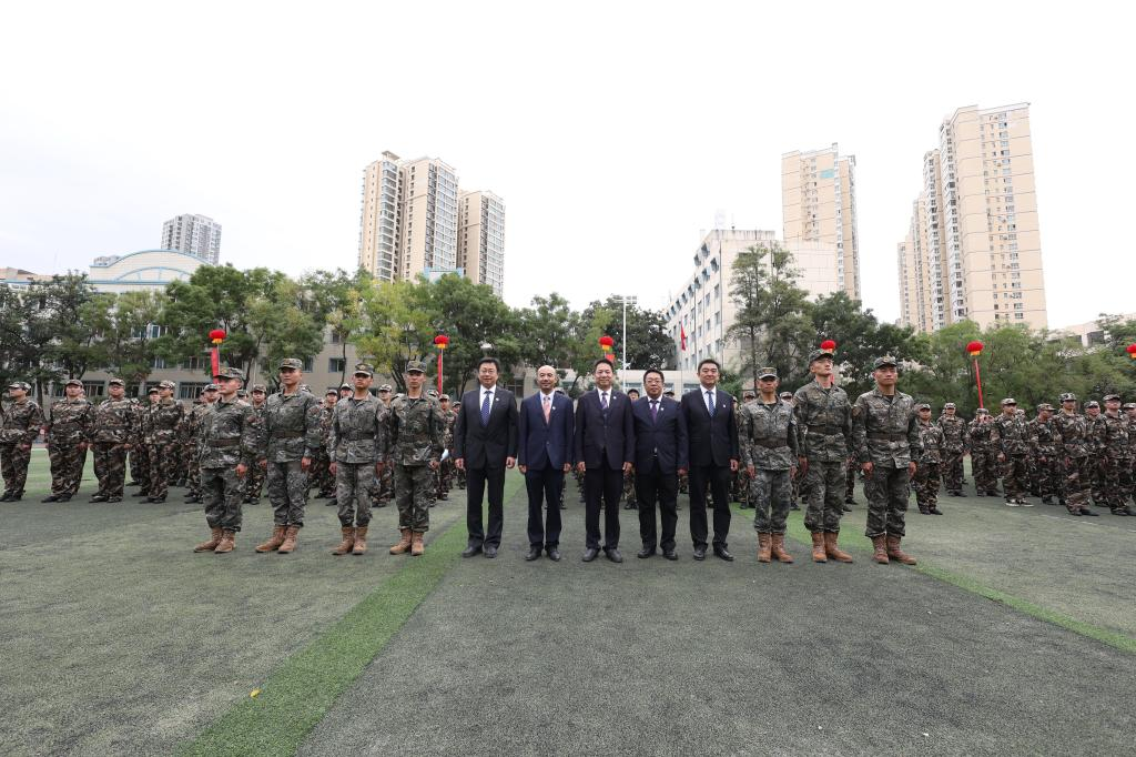 典礼结束后,朱廷珺来到军训场地,亲切慰问承担2025 级新生军训任务的教官,对教官们的辛勤付出表示感谢,并叮嘱大家在严格训练的同时,关注新生身体状况,确保军训工作安全、有序开展,帮助新生上好大学 “第一课”。