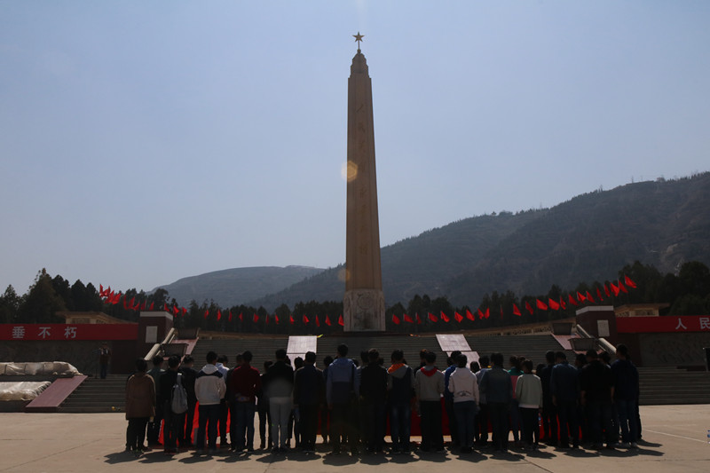 在苍松翠柏的映照下,革命烈士英雄纪念碑显得格外巍峨,同学们怀着无比敬仰心情齐唱国歌并由学生代表向纪念碑敬献了花圈。全体人员向革命烈士纪念碑鞠躬致敬,在低沉的哀乐声中进行了默哀。随后由学生代表致词,号召同学们缅怀革命先烈,弘扬爱国主义精神,珍惜大学时光,努力学习,开拓进取,培育和践行社会主义核心价值观,使自己成长为具有高尚思想品质和良好道德修养的合格建设者和接班人,在实现中华民族伟大复兴的征程上奋勇前进! 最后全体师生参观了兰州解放战役纪念馆。