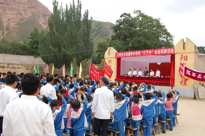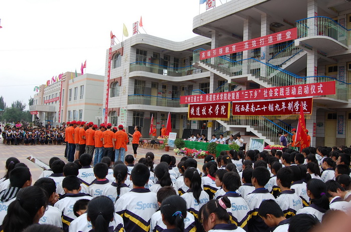 2011年6月30日,兰州交通大学铁道技术学院暑期“三下乡”社会实践活动的30余名师生来到陇西县南二十铺九年制学校,开展以“走进新农村、服务新农村、建设新农村”为主题的暑期“三下乡”社会实践活动。县人民政府副县长党伟、兰州交通大学铁道技术学院党委副书记、副院长李瑞、院团委书记刘锋代表学院参加了活动。
