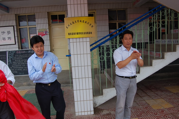县政府副县长党伟就全县经济社会发展情况做了简要介绍,对铁道技术学院多年来的支持与爱心援助表示了感谢,同时要求相关部门加强协作,密切配合,确保活动取得圆满成功。李瑞副院长介绍了铁道技术学院的教学、就业等情况,感谢陇西县政府的大力支持,对大学生提出了殷切希望和要求,要求同学们珍惜机会、融入环境、认真实践,带着问题走进农村、了解基层、认识社会,切实实现拓宽视野、增长才干的实践目地。最后,党伟副县长与学院党委副书记、副院长李瑞一起为“兰州大学铁道技术学院陇西菜子二十铺学校社会实践基地”揭牌。