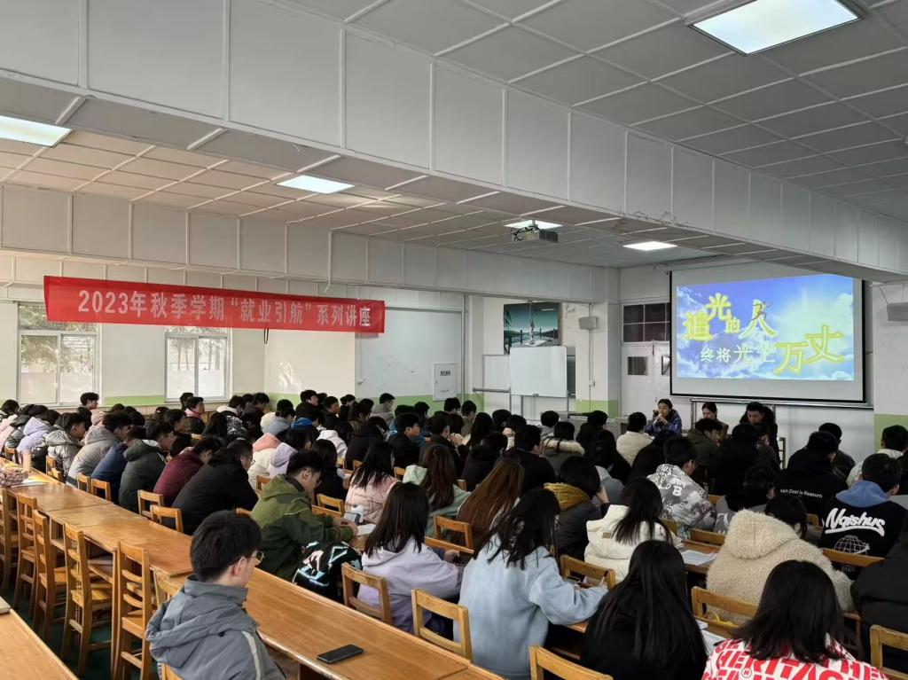 主讲人董慧老师结合入职、学习、竞赛等个人成长的心理路程生动幽默地开展了一场题为“追光的人终将光芒万丈”的报告。讲述了自身通过不断学习专业知识、参加各种竞赛,抓住机遇,脱颖而出的成长历程,希望同学们能够脚踏实地,持之以恒的努力学习专业知识,提高专业素养。董老师通过互动提问,耐心解答同学们关心的问题,给面临招聘求职的同学提供参考意见。生动的实例、接地气的语言吸引了大家,现场不时响起阵阵掌声。现场还进行了问卷调查,同学对此次讲座的满意度和就业、升学、求职需求等进行了测评,收到了良好的效果