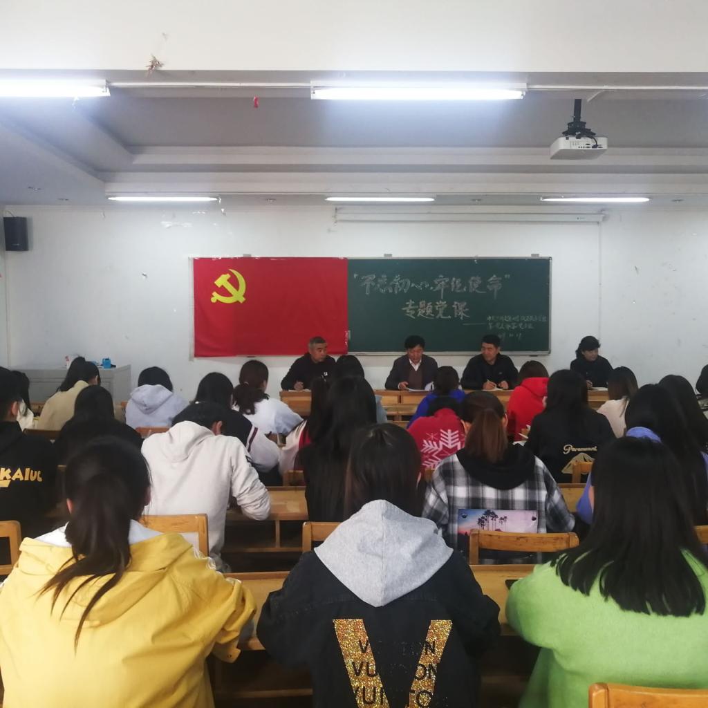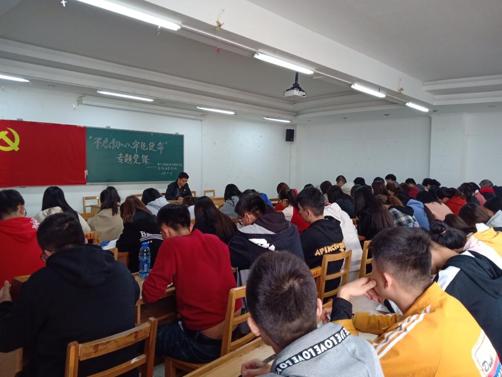 为了深入学习贯彻习近平新时代中国特色社会主义思想,锤炼大学生党员忠诚干净担当的政治品格,铁道技术学院第一党支部于2019年10月17日下午3点半在西教324教室开展“不忘初心,牢记使命”主题专题党课。