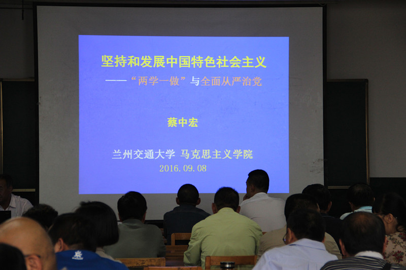 9月8日,铁道技术学院邀请甘肃省讲师团成员、学校马克思主义学院院长蔡忠宏教授为学院120名教工和学生党员举办了名为“坚持和发展中国特色社会主义—‘两学一做’与全面从严治党”的专题辅导讲座,学院领导班子全体成员参加了学习。